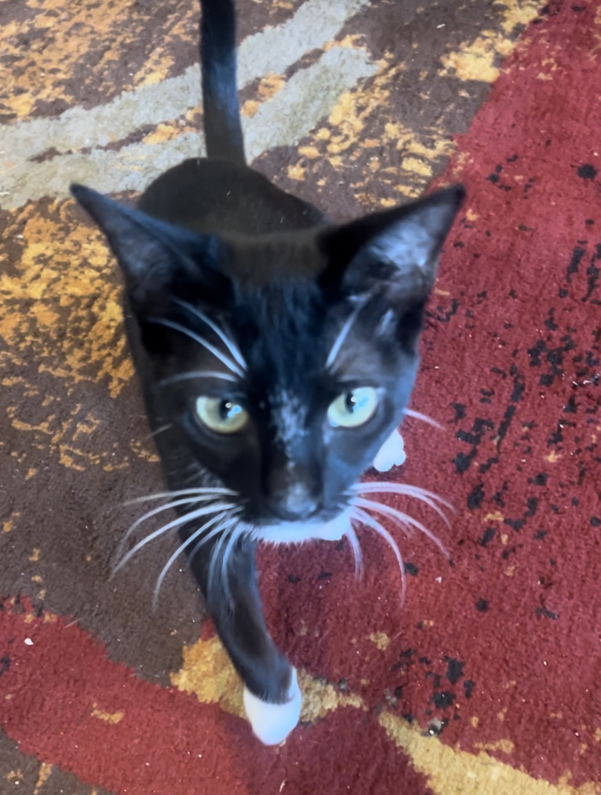 This was the least fuzzy frame I could get from the video of her saying hi. Many are too close and blurry to see her well.